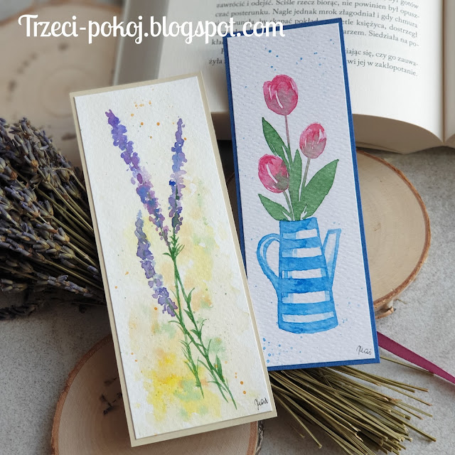 Piękne zakładki, każda inna i cudowna:) Ja moje akwarelowe zakładki zabezpieczałam, laminując je:)